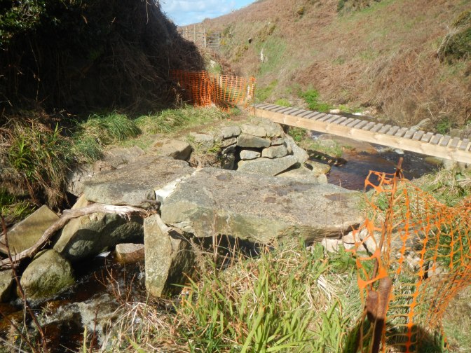Breakfast was served from 08:30, leading to a relatively late start time. However it was all very pleasant with a real fire already burning in the bar which had turned into the breakfast room. The path led past the Pendeen lighthouse and through fields of horned cattle – passed with trepidation and careful estimation of potential escape routes. The path was boggy but with some helpful stepping stones and I enjoyed more of the magnificent coastal scenery in sunny weather conditions. There were few people apart from near road access points to the path. A fellow walker with a small day rucksack walking towards me complained that the path was rocky and boggy – correct, but surely that’s to be expected and we don’t want a paved path round the coast!