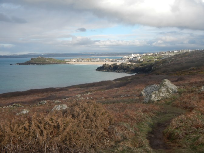 I navigated a particularly rocky area and met a group of young people wearing skirts and canvas shoes and carrying handbags – impressive, but I’m not sure how they had managed to walk there. There followed a particularly boggy area so I arrived in St Ives with muddy and wet boots.