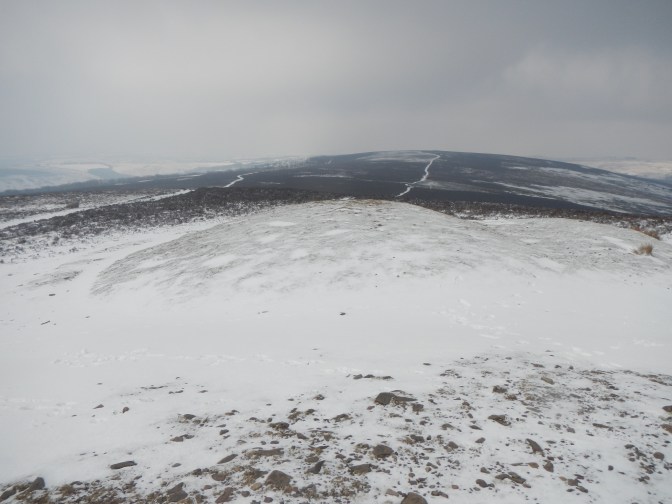 The path back up to the moor looked very different from the previous day, now with its covering of snow, newly born lambs stayed close to their mothers or found a patch of grass sheltered from the snow to sit down. The path higher up approaching Dunkery Beacon was very distinct and easy to follow, being the line where all the snow had drifted. The visibility was superb with awesome views across the snow clad moor.