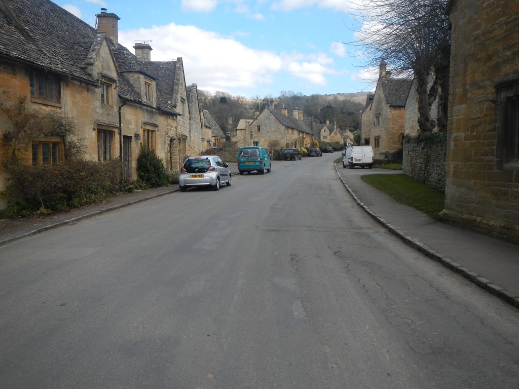There followed a pleasant mix of old woodland and open fields as well as some estate / parkland planted with specimen trees. Fortunately for me the field with a “Beware of the Bull” sign was just occupied with ewes and lambs. I passed through some very expensive and exclusive looking villages – Stanway where there was a large Morgan convertible car parked prominently; Stanton with many thatched dwellings and an interesting village cross. A long upward stretch followed past Buckland to my destination – the larger, but still predominantly very affluent, village of Broadway.