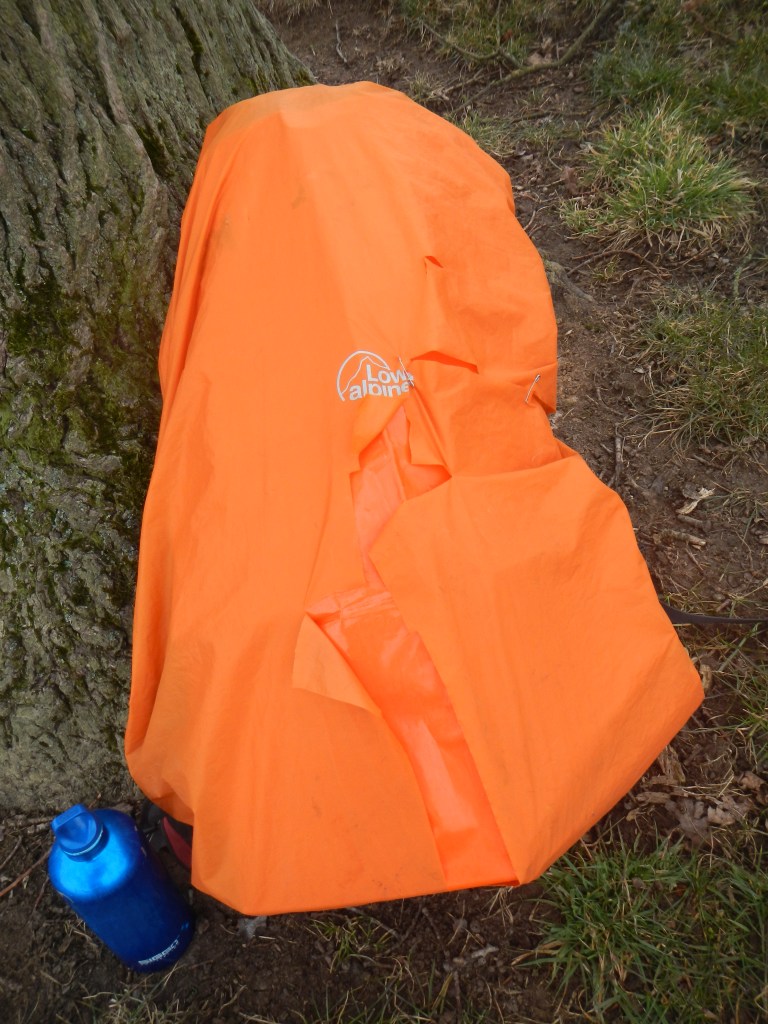 However at least I was on the other side of the fence from the bullocks. Safely separated from them, they looked friendly and perplexed so I even took a photograph of them. I tried but failed to repair my cover with first aid tape and plasters. The adhesive just did not stick properly. Positioning my survival bag in the rucksack webbing so it provided some water protection where my cover was ripped proved a better plan, especially with the help of a couple of strategically placed safety pins to close some of the rips.