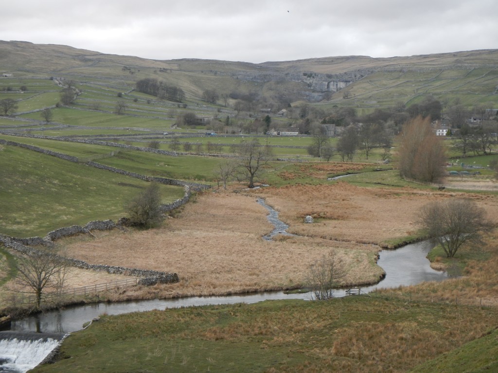 There was just an eight mile walk to Malham to end the day. This was mainly alongside the River Aire and over a few fairly gentle grassy hills. Half way there, I was surprised to see Peter and Liz sitting on a grassy bank – they must have overtaken me during my long break in Gargrave, although there was also a rumour about a stretch of road and a car….