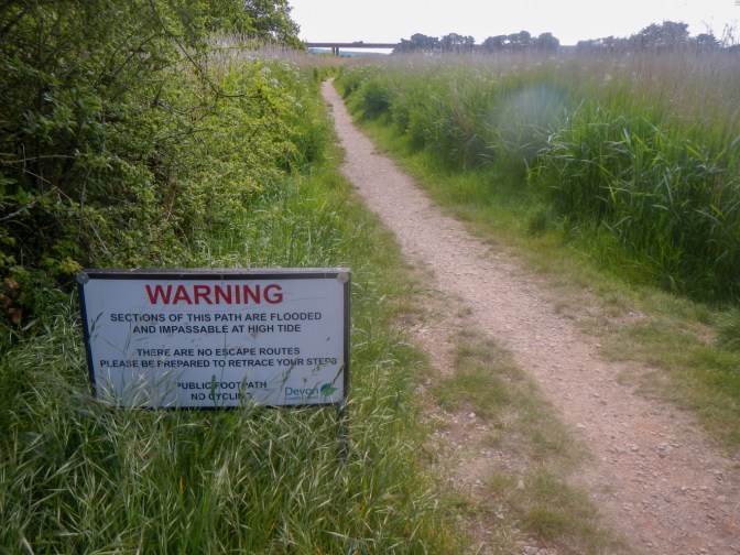 At Topsham Ferry there was a footpath sign pointing towards the mud flats. This path is tidal, but surely not that tidal! Silly me – of course normally in the summer the small ferry would be working and taking passengers to the footpath on the opposite bank.