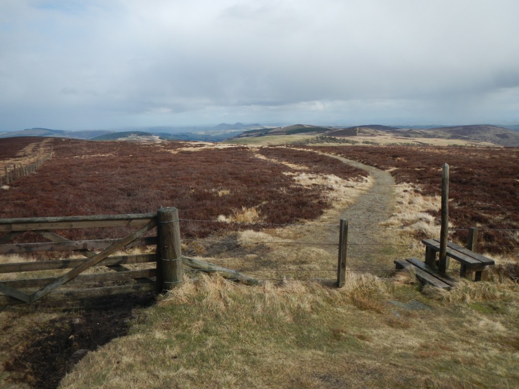 I made a quick trip to Co-op for some lunch provisions then walked past the abbey (this is another Border town I would be keen to revisit and explore). I was soon out of the town, following the River Tweed and a disused rail track and then uphill. There was a good path on to a ridge where I enjoyed fantastic views including back to Eildon Hill. This was part of the Southern Upland Way.