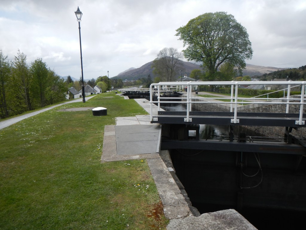 The route out of Fort William on the Great Glen Way passes through the Lochside estate – a “garden city” built by the aluminium company. Reaching the canal, the first stretch includes the awesome Neptune’s staircase – a ladder of locks. Folk were friendly and I talked to several including a couple on a caravan tour, planning themselves to be at Dunnet Head in two weeks time, so I expect I will be there after them. There was plenty more to see including a swing bridge and two small aqueducts. There were views too of the impressive Nevis range – and this looked impressive in the sunny weather.