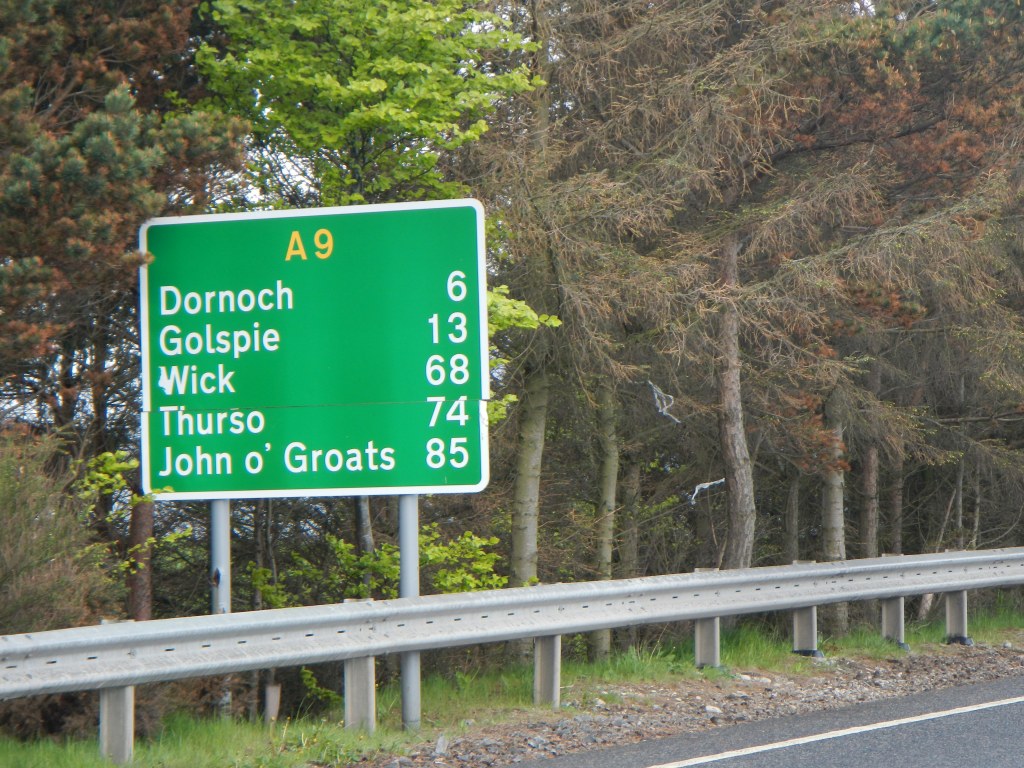Having managed to pack my tent and possessions in the relative dryness of the camp site laundry room and then wipe down the room to leave it as I had found it, I set off on my short walk in wet and windy conditions. I saw my first sign for John O’ Groats – 85 miles the direct way – that was really exciting.