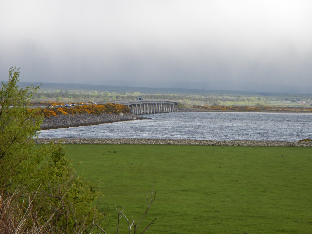Fortunately there was a pavement along the side of the very long bridge across Dornoch Firth. Once at the far side, I scrambled down an embankment on to the unclassified quiet road to Dornoch.
