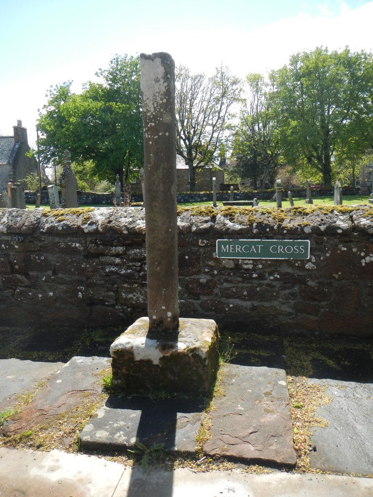 The Ell at Dornoch is an interesting old stone slab in Dornoch Cathedral graveyard used for measuring lengths of cloth. Its name came from the Latin for arm ‘ulnia’ and was assumed to be the average length of a person’s arm but the Scottish Ell was standardized in 1661 to 37 inches This stone is marked with two metal points which measure 39 inches so probably pre-dates standardization. It would have been used during fairs in the Mediaeval Period. There are only two other known examples of Ells remaining in Scotland. I also saw further evidence of Mediaeval Trade in the town in the form of the Meer Cross.