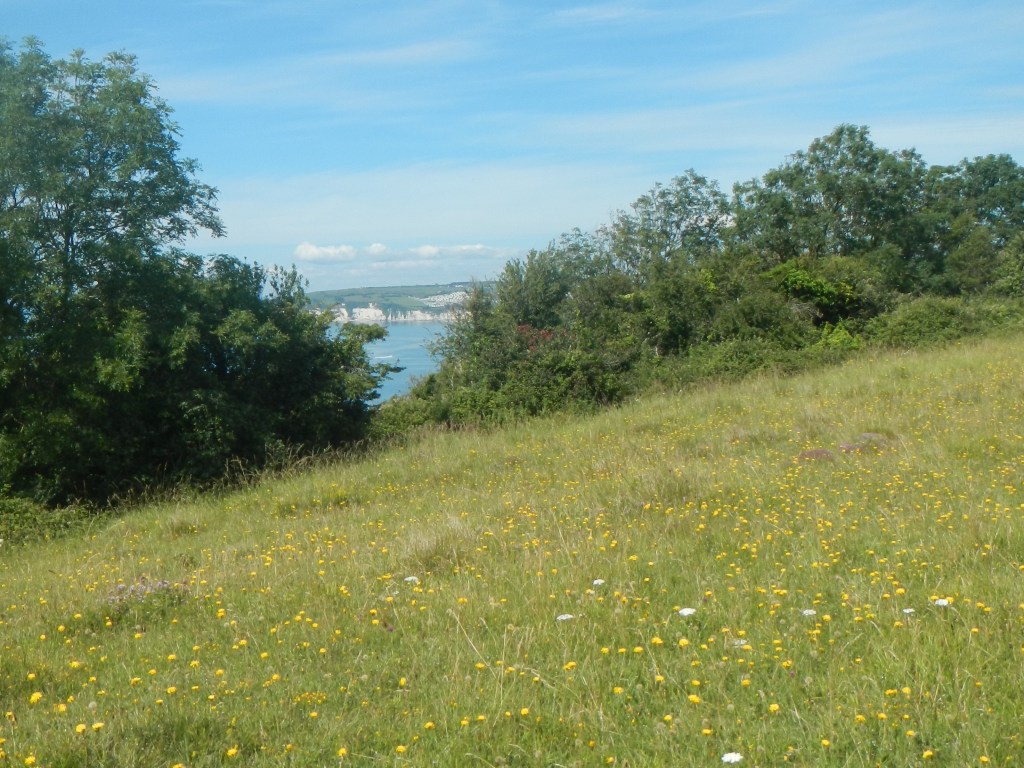 Formation of “Goat Island” followed a major landslip in Christmas 1839. A large block of land was completely isolated from its neighbouring fields but remained flat and retained its crop of wheat and turnips. The “Island” became a tourist attraction attracting paddle steamers full of curious visitors – even Queen Victoria came to observe the scene from her Royal Yacht. Nowadays it is managed as an area of chalk grassland, raked every year to provide conditions for a range of rare plants and insects including orchids and the common blue butterfly.