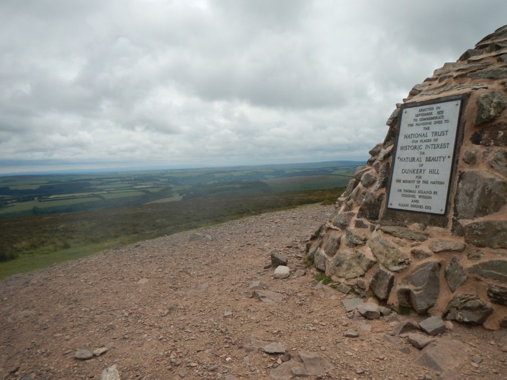 A footpath followed crossing a cricket pitch and, rather incongruously, a field where planes must be able to land (well there was a wind sock). Soon I was walking through a small area of mixed woodland before climbing up a stony track towards Dunkery Beacon. I stood at the edge as a mountain biker bounced down the hill on a tortuous trajectory trying to avoid the biggest boulders. I passed more ponies and had views across to the coast. It was definitely windy at the top. With the aid of the panorama viewpoint plaque, I was able to see Yes Tor on Dartmoor – amazing considering that when I was on Yes Tor itself a few weeks ago, I could barely see the Tor in the cloud. I was also able to see the white church at Selworthy close to where I had parked my car.