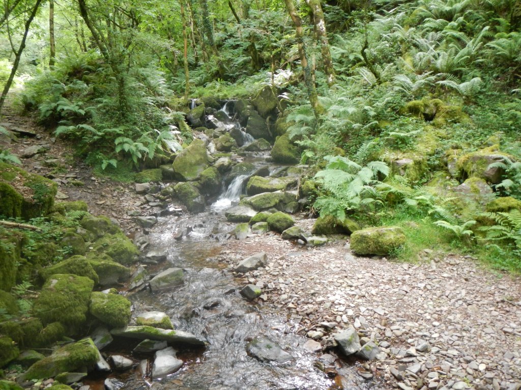 The descent was steep but easy and I had soon left the open moor to reach the southern extremity of Horner Woods. I found a clear stream-side path which kept crossing from one bank to the other of East Water and Horner Water. Amazingly all the crossings had footbridges even though it was easily possible to ford the shallow stony bedded stream wearing walking boots. This was interesting mixed woodland. Eventually the path turned into a track before going over an ancient packhorse bridge and reaching the road.
