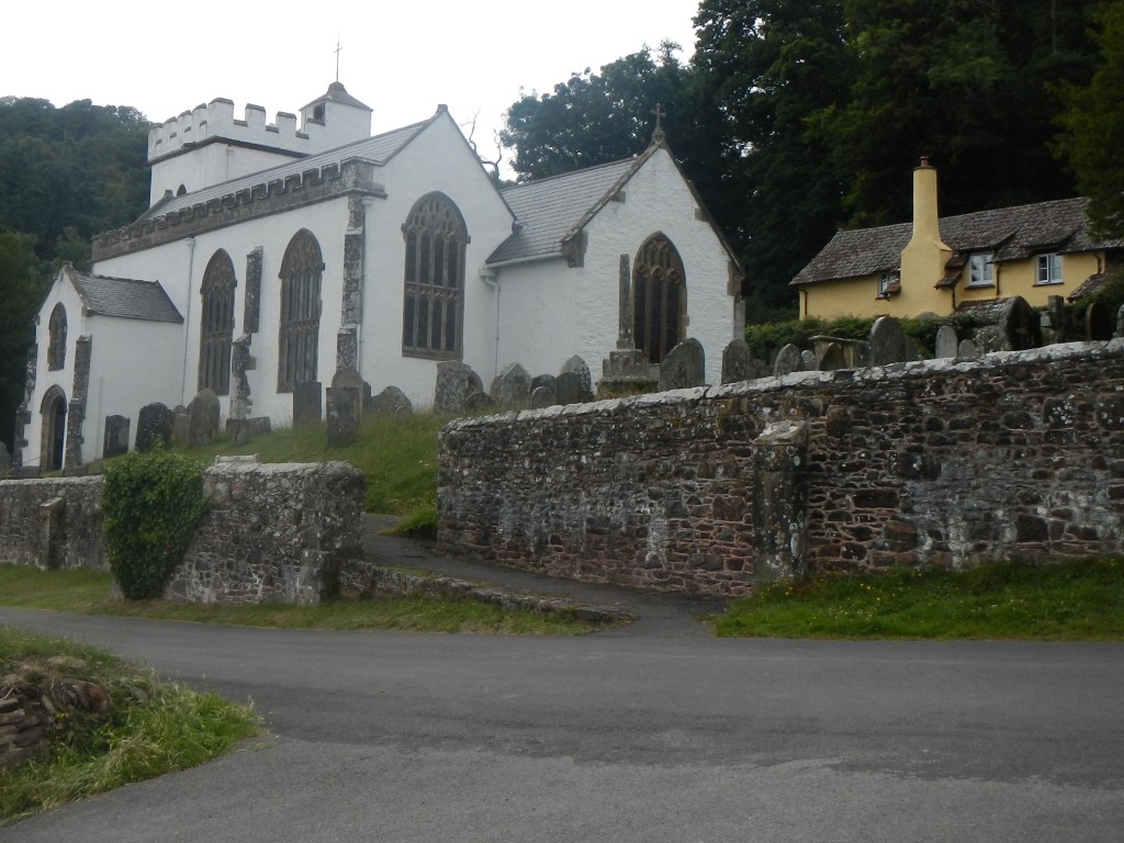 After much deliberation, I decided to start my trek from the picturesque village of Selworthy with its iconic whitewashed mediaeval church. Fortunately the small National Trust car park still had spaces. As I arrived, a group of four walkers were just setting off on their expedition. The light rain had stopped and the weather appeared to be brightening and set to improve as the day went on so I decided to walk clockwise, leaving the higher ground at Dunkery Beacon for the afternoon when the views might be better.