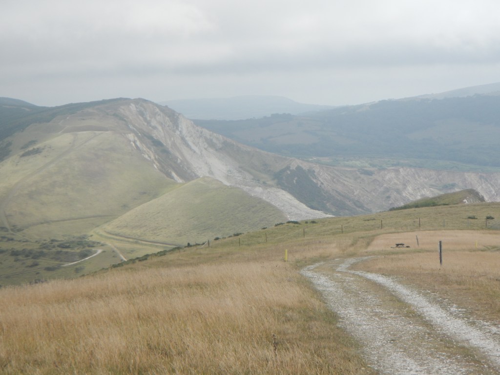 From there I descended again back to the main path and a further uphill before some relatively flat coastline walking. The coastline changed suddenly from the white chalk cliffs of the Lulworth area to the black oil bearing shales of Kimmeridge. I took the route towards Kimmeridge village maintaining much of the height I had gained. There were few people apart from a couple struggling to get their bikes over a stile (actually bikes aren’t permitted but I held my tongue).