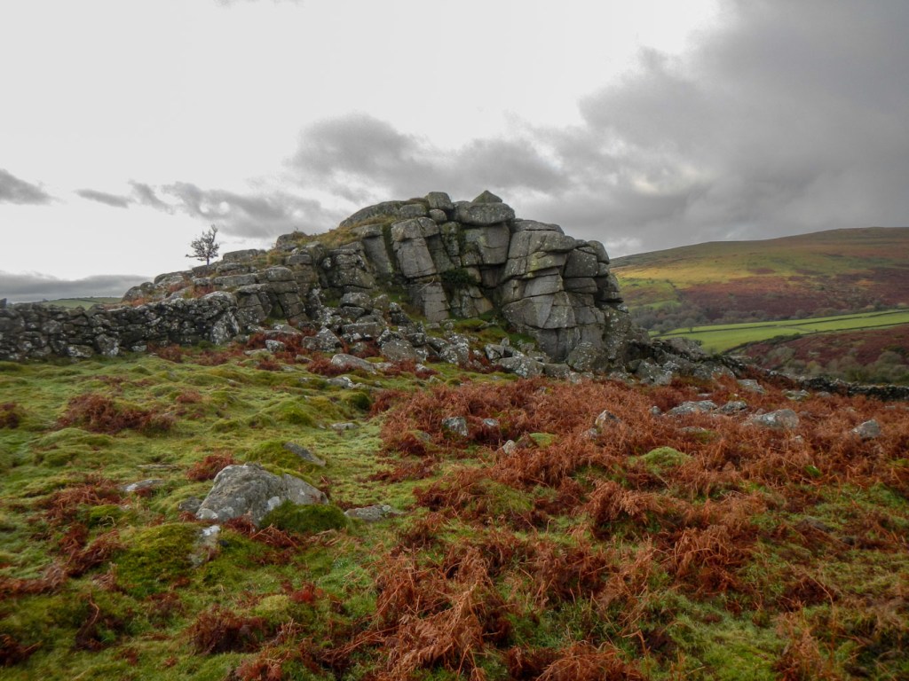 We made our way up the road to the Avon Dam, noting some highland cattle as we went. After crossing the river on a bridge, I headed up the hillside and followed an intermittent path to Shipley Tor. My husband continued up the road and we agreed to meet later at the dam. It was a bit of a double back for me in terms of distance from the car park, given there was no right of way over the fields between the road and the moor. The tor itself was incorporated as part of the field boundary.