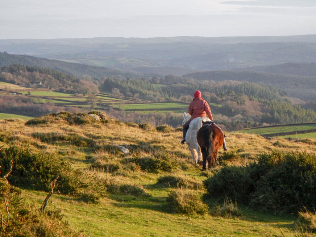 Fortunately I got past and crossed the road to Dunstone Down to visit Wind Tor, my final tor of the day. The presence of cattle and ponies meant I had no further problems with dogs. As I photographed the tor, I saw a lady riding a horse and leading a Dartmoor pony that she was breaking in.