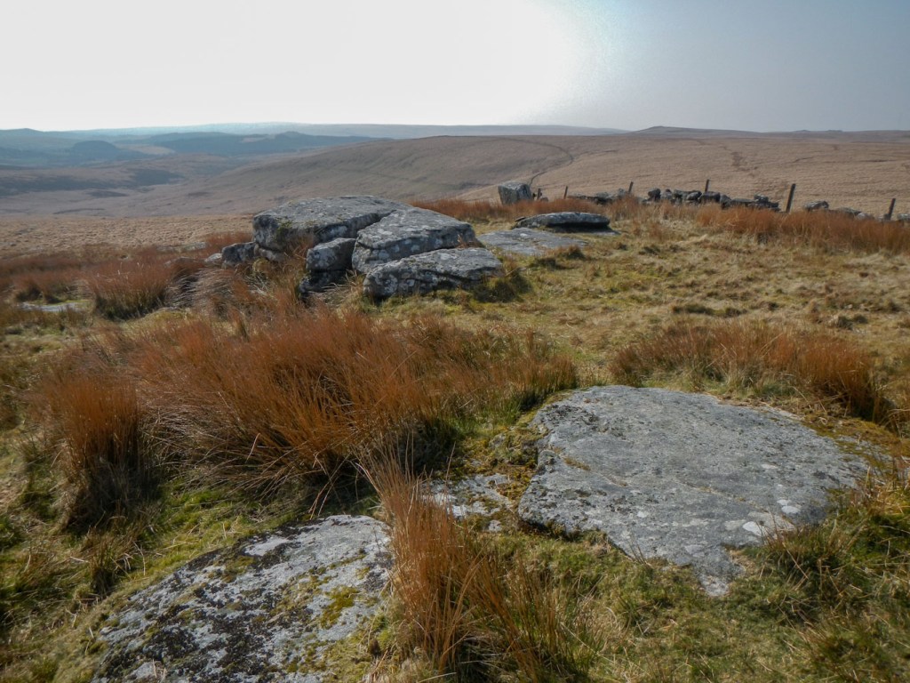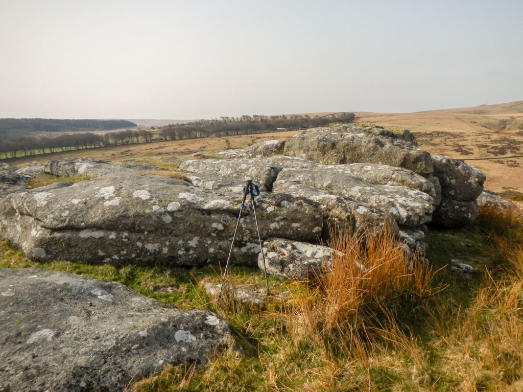 After leaving the easy gravel tacks of the forest behind me, I climbed up fairly featureless and tussocky moorland and saw some rocks ahead. However, despite looking like a tor this was marked on the map as a settlement and there was a further hike to reach Stannon Tor, my final tor of the day.