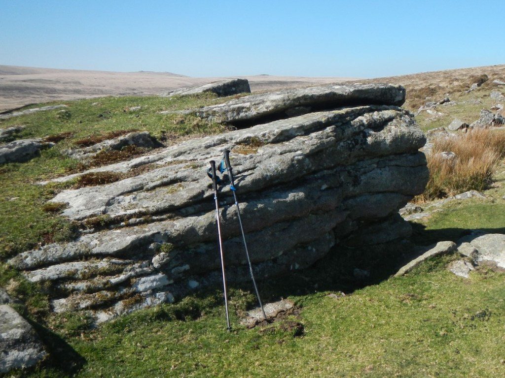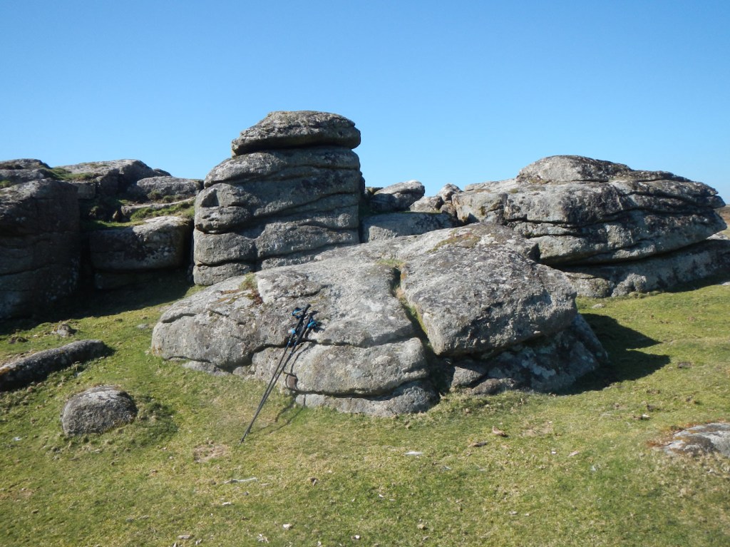 From Stannon Tor, I decided to deviate from my planned route and descend to the buildings marked at Stannon as I could see that this could give me an easy route back to Postbridge. Sadly, I descended and couldn’t find a way on to the track. I ended up climbing back to some sheepfolds only 40m descent from the tor and making my way over rough ground to near Hartland Tor (which I had visited first in the morning). However eventually I arrived back at my car in Postbridge. Ten tors bagged and I was tired out after walking almost twenty miles. Admittedly much of it was over pathless tussocks, but, after such a long gap due to lockdown, a full day walk had taken its toll. Hopefully the next gap will be shorter and we are really coming out of the final “lockdown”