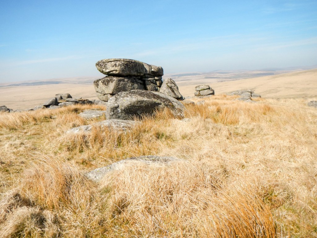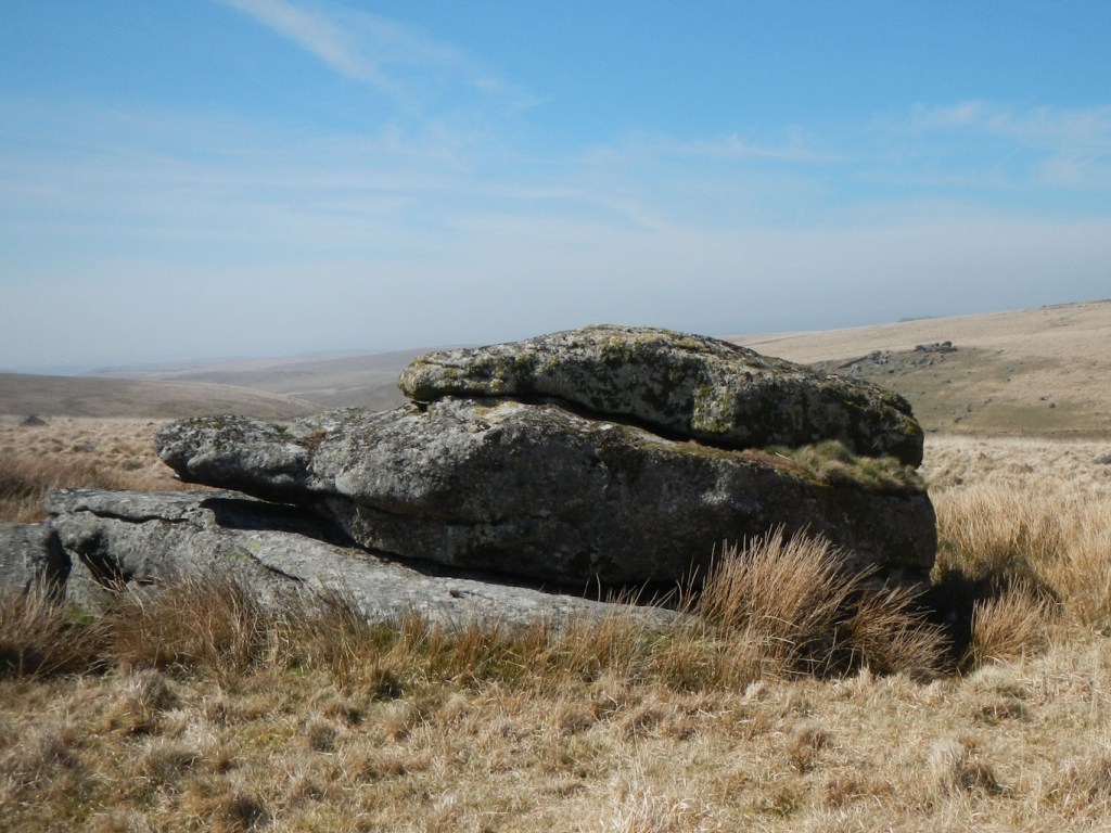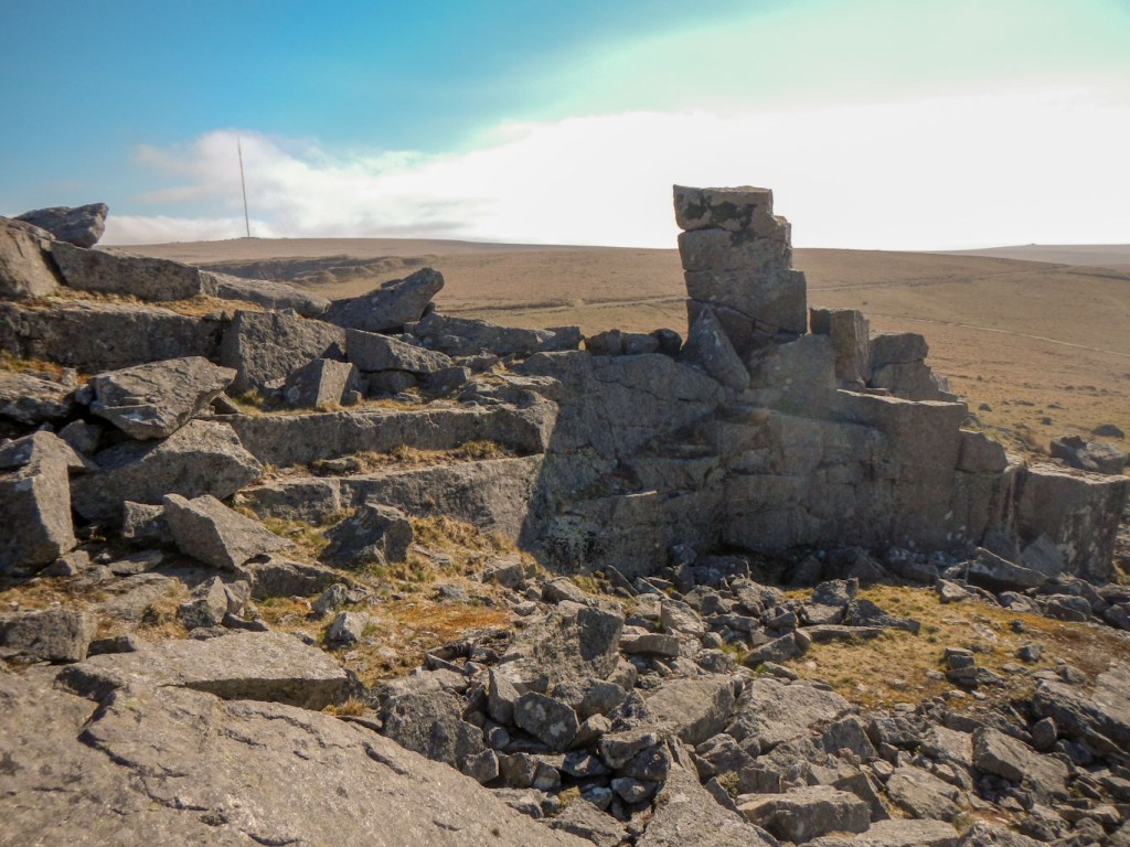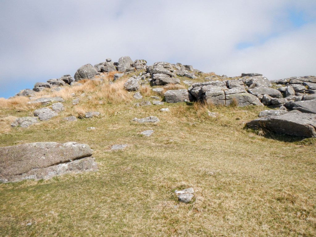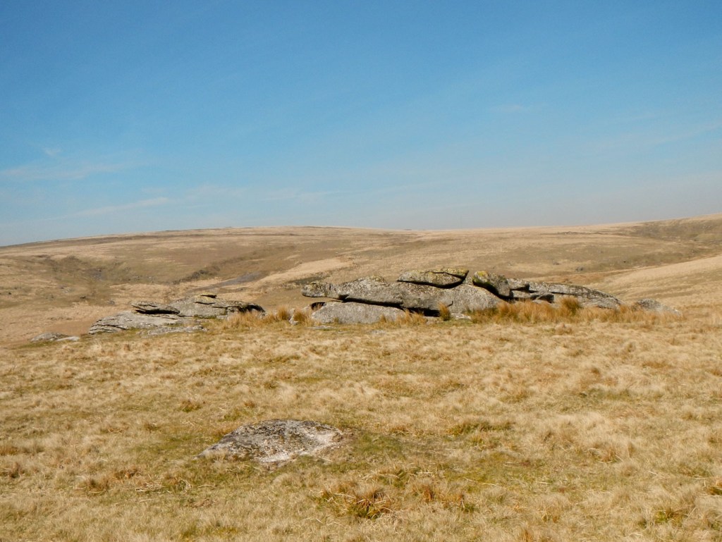 There was further easy walking to Penn Beacon and the second trig point of the day. Next I descended to Rook Tor. As mentioned in Tors of Dartmoor Database Result: Rook Tor this is little more than piles of clitter with a scattering of larger rocks.