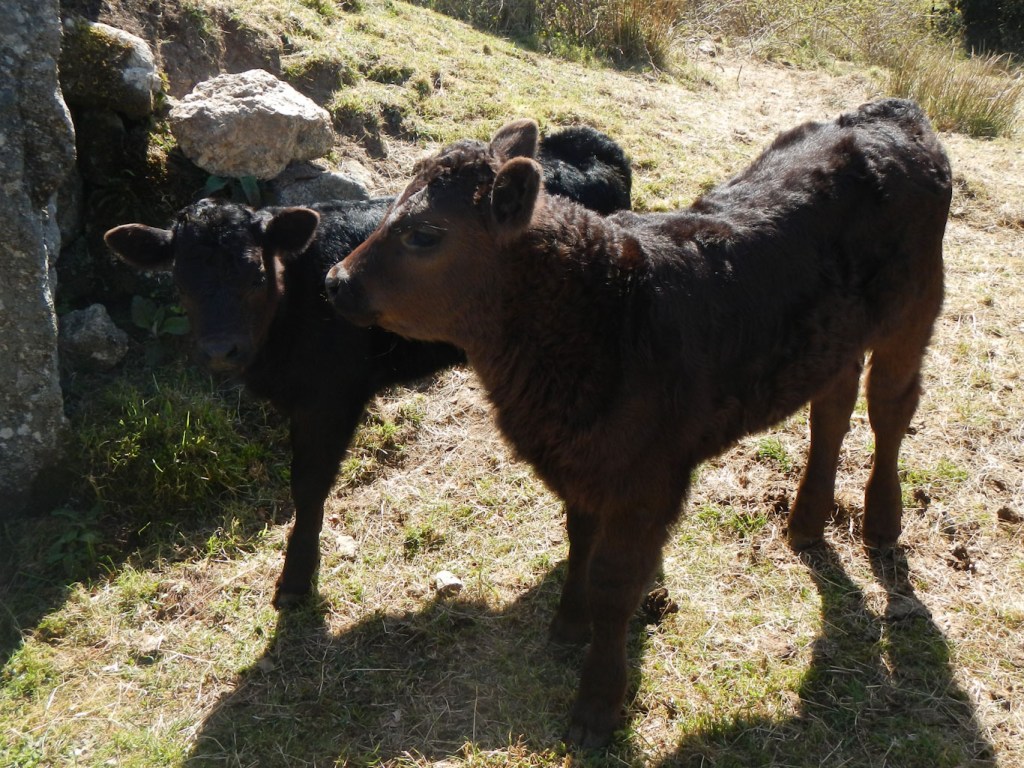 The centre of the village comprises the church and a Dartmoor Cross. However the village really is in the middle of the countryside. Across the road I spotted two young calves in a field, peering curiously but nervously through the bars of the gate, their mother watching them.