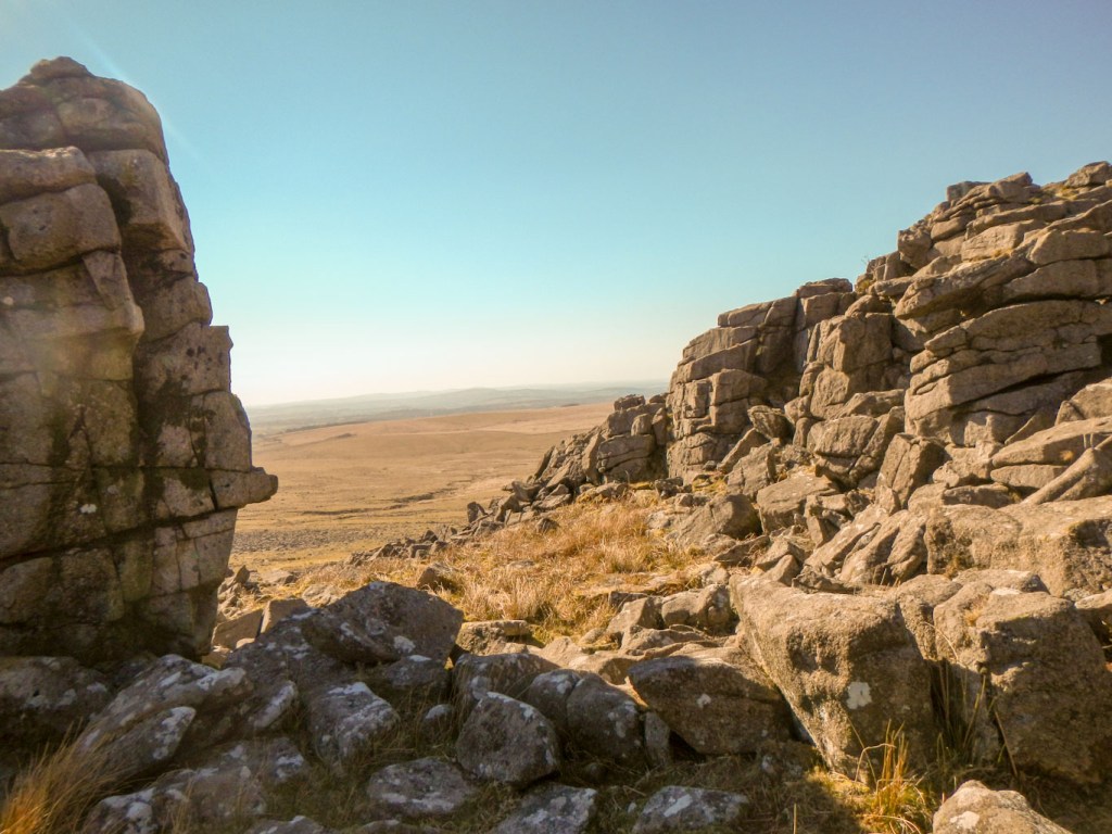 From Yealm Head, the ground was incredibly tussocky and it was hard to follow a straight line. I wiggled around everywhere with no feature on which to fix a bearing. In the distance, I spotted a large group of walkers, who seemed to be having heated discussions about their route. I was hopeful on a few occasions that I had reached the pair of Little Gnat’s Head Tor and Calveslake Tor but I had been walking the wrong way and it was just another cairn or prominent rock. Eventually when I went the right way, there was no mistaking the two tors. I was tired after ploughing through so much long vegetation so stopped for lunch at Little Gnat’s Head Tor. There was a fine view across the Plym Valley towards Higher and Lower Hartor Tors (already bagged).