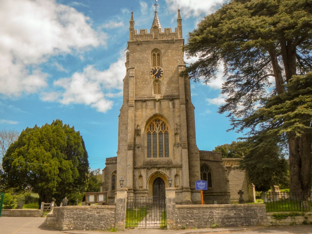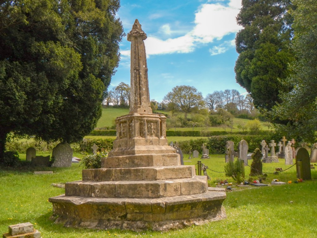 After eating lunch, sitting high above West Pennard village, listening to the sound of primary school children at play in the grounds of the primary school far below, I descended to the village. I seemed to miss the path somewhere but was definitely on it at the end as I entered the grounds of the 15th century church, passing the Grade 1 listed cross.