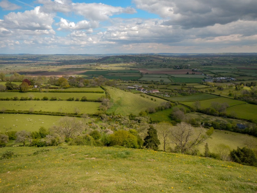 Soon I was climbing again on a quiet lane up the intriguingly named Stickleball Hill before turning off the Monarch’s Way on to a path along the ridge. From here there were views all the way across the West Mendips to the prominence of Brent Knoll, usually seen by me from the M5.