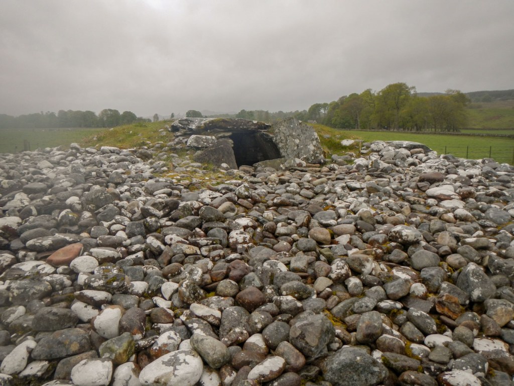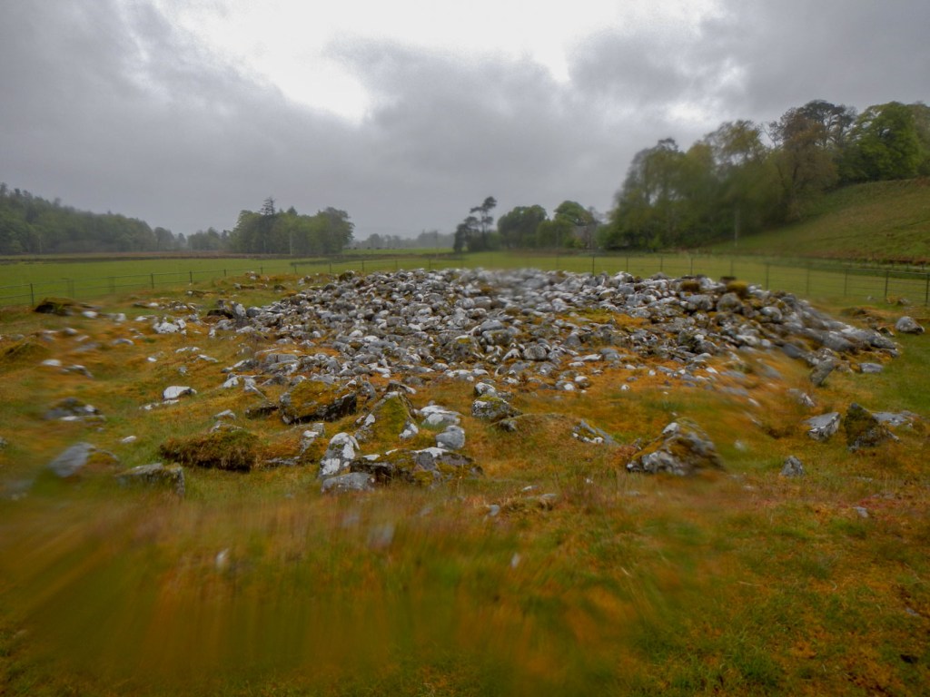 At Kilmartin itself, we left the car despite the rain and walked past some of the more obvious sights. There is an interesting 2km line of cairns. These five burial monuments all date to about 5,000 to 3,500 years ago, and are associated with the many other ritual monuments of the area, such as Temple Wood Stone Circles. These two circles date from some time before 3000 BC and were used into the Bronze Age, ending about 1000 BC. In that time it was used as a place for ritual ceremonies and funerary activity.