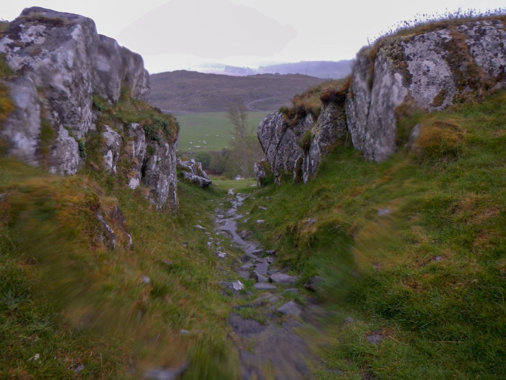 South of Kilmartin we visited what now appears to be an insignificant small collection of buildings, not even a village and scarcely a hamlet. This is Dunadd. Between AD500 and AD900 this was one of the most important places in what has since become Scotland. The original Scots were migrants from Ireland (“Scotti”) who from about 500 settled across Argyll in ever greater numbers, founding the Kingdom of Dalriada. Dunadd was the capital of the kingdom and was the place where its Kings were anointed. Sadly it was raining so much that my husband didn’t even leave the car to make the short ascent to the fort. I did but actually missed seeing the imprint of a foot carved into the rock. It is thought that, following Irish tradition, the King of Dalriada was inaugurated by placing his foot into the rocky imprint. I also missed the nearby inscribed ogam text (an alphabet of straight lines), whose meaning is unknown, and a carving of a boar. We will have to return in better weather.