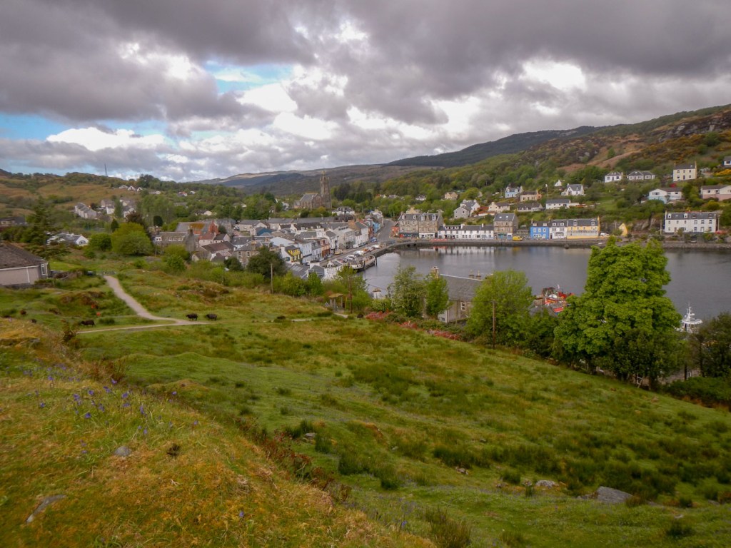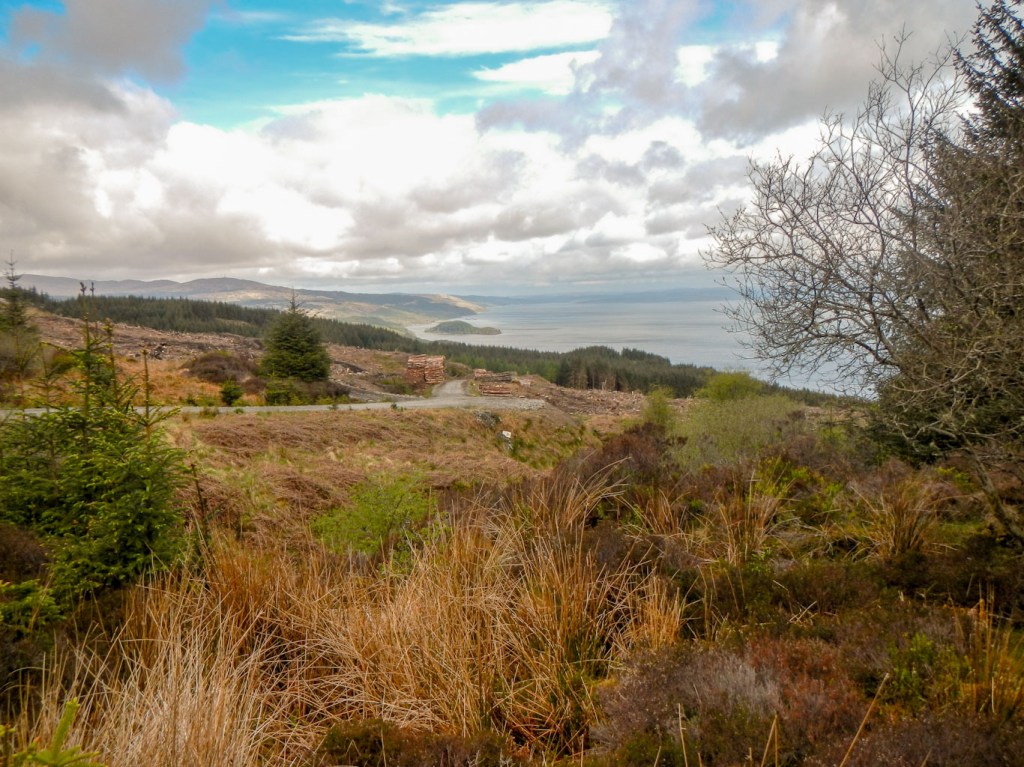 After a bright and early full cooked breakfast, I was driven to the first start point at Tarbert. We had some discussion about where the path went up from the quay, but it was actually clear in the end as it was signed up past the prominent castle overlooking the harbour. Although pre 14th century in construction, the tower dates back to 1494 and the visit of James IV to the Western Highlands. I made the short detour to the viewing platform, before getting underway with the walk in earnest. it was a beautifully dry day.