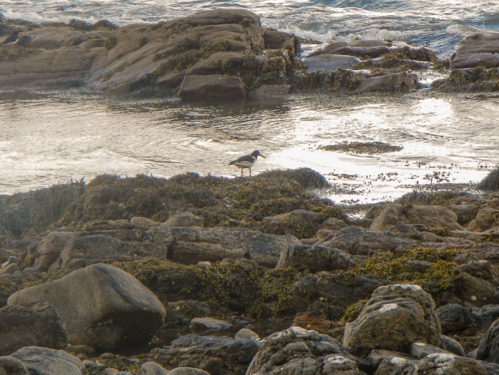 The bay looked beautiful and sandy. Further round the coast, the shore was more rocky. I saw a couple of men who appeared to be living behind beach windbreaks – one who was collecting driftwood, was possibly living in a cave behind his wind break. In terms of bird life I saw oyster catchers, shags, divers and Arctic tern.