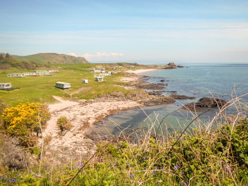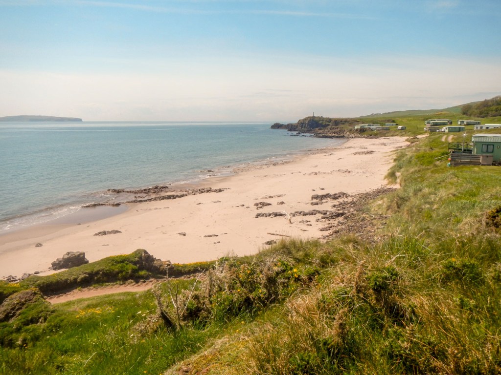 Eventually the route left the road to cross some farmland where I saw tadpoles in a pond then reached some wonderfully deserted sandy beaches. On the fields back from the foreshore there were scattered static caravans and caravan parks but with well separated pitches. It was clearly possible for ordinary cars to reach the sites, although from my approach, it felt as if I was in the middle of the countryside far from any roads. I had whole beaches to myself and sat on one to eat lunch, looking across to small Sanda Island (according to the map it has a pub). I’ve just looked at the website – the whole island can be hired at £2000 per day for up to eight people – too expensive for me! (Private Islands for rent – Sanda Island – Great Britain – Europe: Atlantic (vladi-private-islands.de)) It all looks pretty luxurious and exclusive though! I detoured slightly to reach the prominent and impressive memorial cross to the eighth Duke of Argyll.