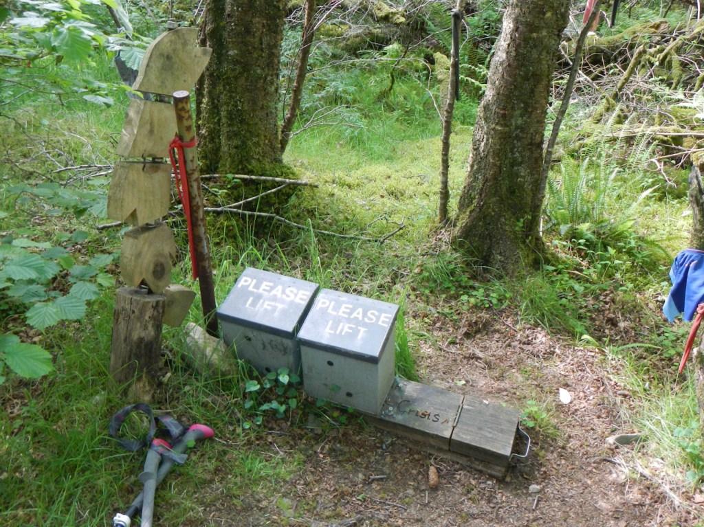 In a clearing in the wood, I discovered the amazing Beehive bothy structure just in time for lunch. This provided welcome respite from the midges and from the rain.