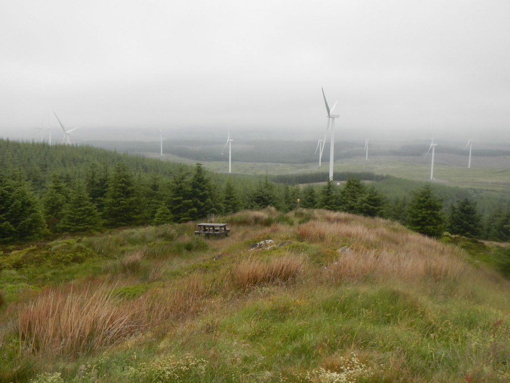 My route passed through a large windfarm complete with warning notices not to walk through during electric storms and to beware of ice and snow sliding off the blades. Although it was rainy with poor views, fortunately there were no forecast thunderstorms and it certainly wasn’t icy.