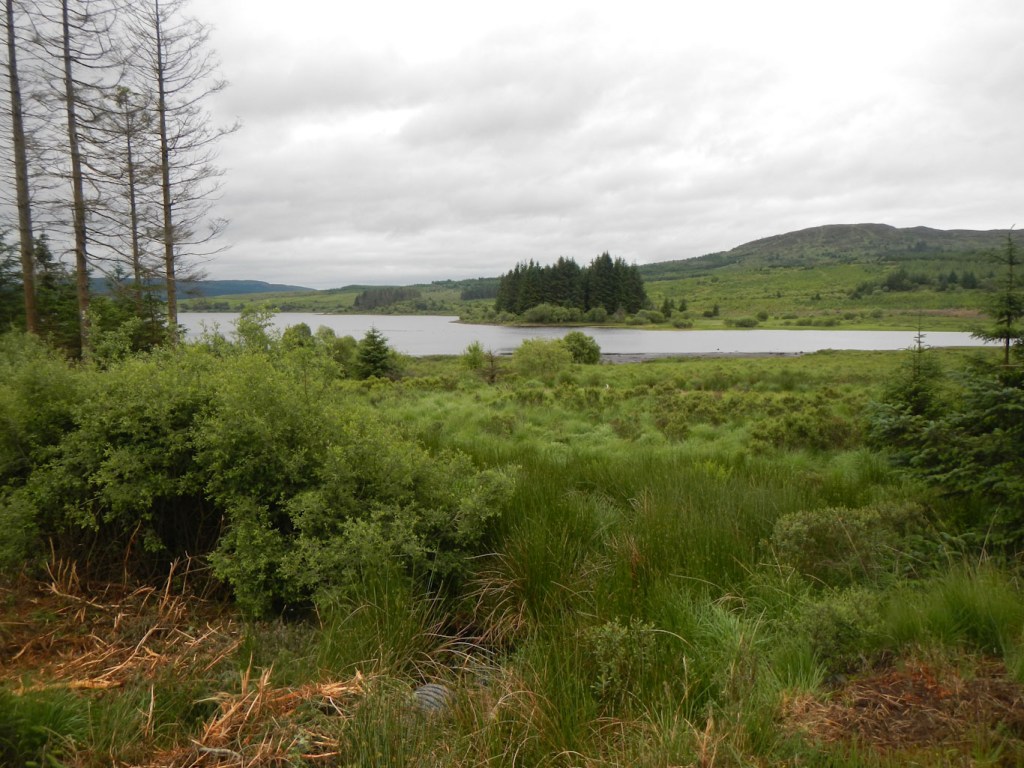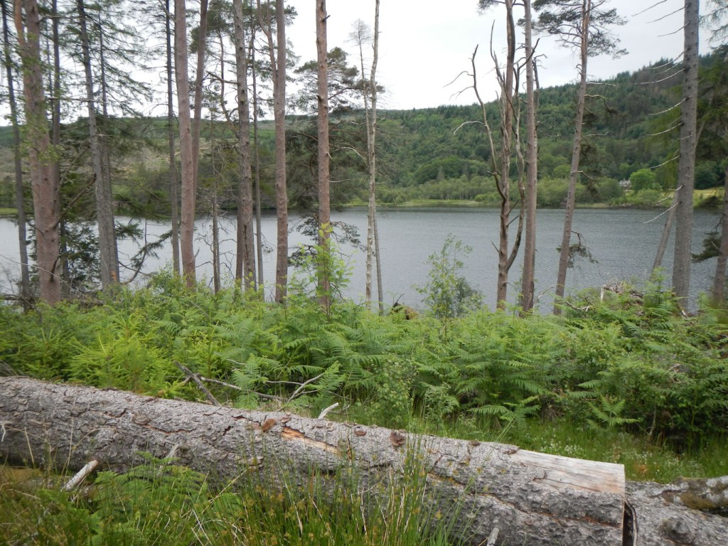 Waking the next morning, the weather was dry and sunny so I enjoyed walking alongside the picturesque River Minnoch and Water of Trool. This was a wonderful path with stinning views of trees, water and mountains but unfortunately signs soon advised crossing the high footbridge across the Trool in order to avoid forestry work related path closures. I followed the road as advised. In retrospect I re-joined the main path again too soon near the old Caldon’s campsite. However I enjoyed a magnificent walk above the south side of Loch Trool and, having got so far, continued when there were notices advising path closure.