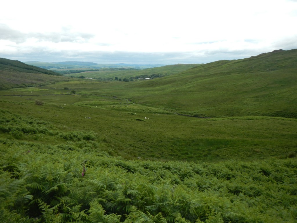 I had a few encounters with cows, taking avoiding diversions initially just after turning inland on a minor road and subsequently towards the end of the day near the Water of Luce. The dry conditions meant that the streams on the desolate moorland of Kilhern Moss, where I had planned to camp were dry in places. However I found a pleasant camping spot on the moor, taking care that there were no cattle in the vicinity.