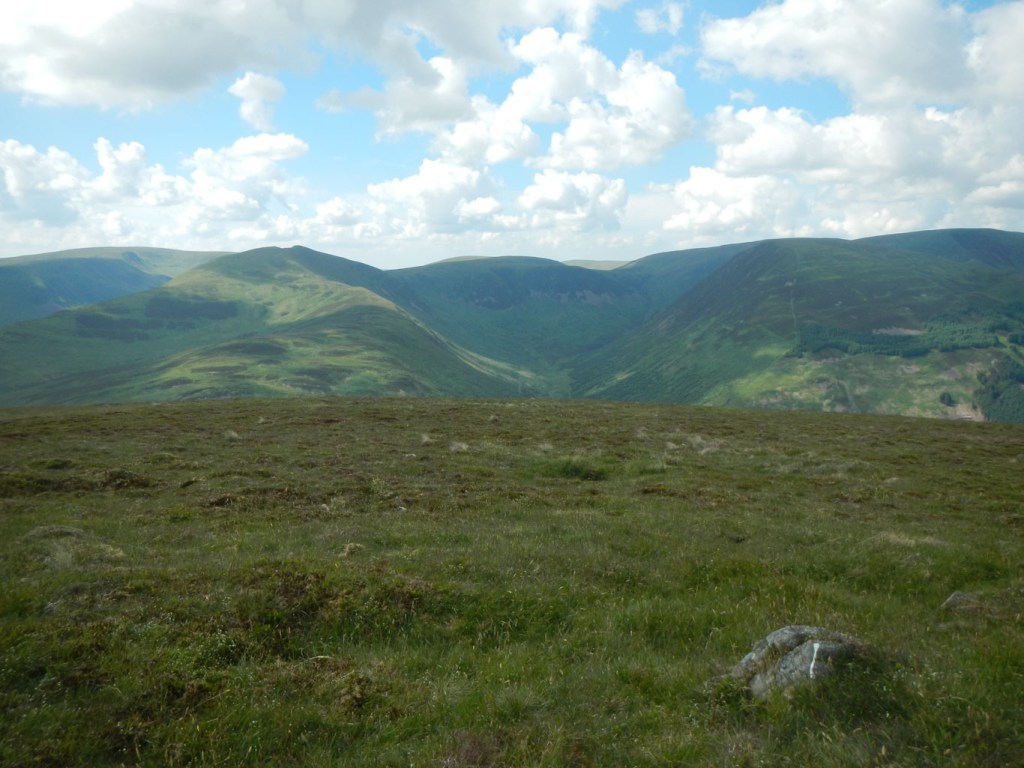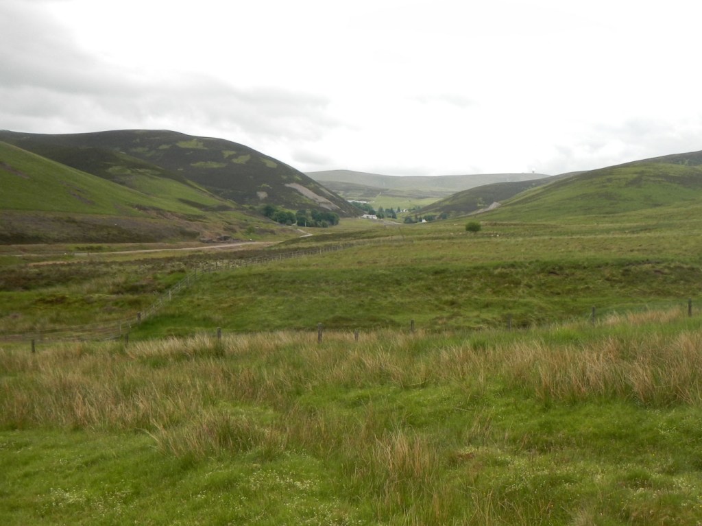 There is a quiet metalled road to follow down the Ettrick Valley for 9km soon after passing abandoned buildings at Potburn. Following an idea in the Cicerone Guide, I opted to turn off the waymarked trail and follow an unofficial high route, particularly given the excellent weather conditions with brilliant visibility. This was actually my favourite part of the entire walk. Having become accustomed to the comfort of frequent way markers confirming progress, it was somewhat daunting to be at high level on an unfamiliar moor. However with the help of my map and compass I climbed over Bught Hill and reached the high ridge at Bodesbeck Law. Having reached the ridge, it was possible to see that fences guided the way and it was merely a case of keeping track of how far I had walked along the ridge. The lack of a path in places and all the tussocks meant it was hard going at times, although nothing worse than the Dartmoor terrain to which I am accustomed. Views were superb and I could see hills going on in layer after layer towards the horizon, sometimes encompassing the entire 360 degrees of the panorama.