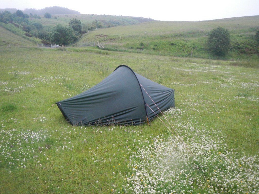 The rain started again as I reached Watch Water Reservoir. Perversely, I had to use my compass in the afternoon to navigate farmland where the route went straight across a ploughed field and the visibility remained poor. I found a place to camp between Ellenford Bridge and Abbey St Bathans just on to map 67, setting me up ready for the final day.