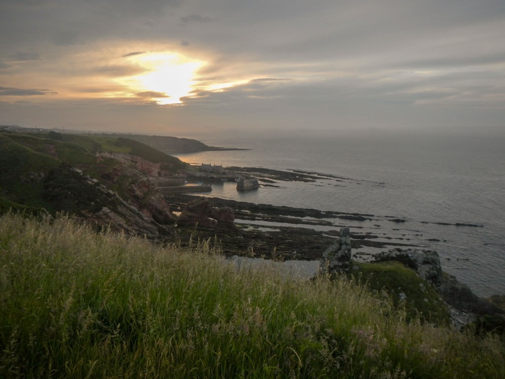 I left the caravan park to walk along the cliff path towards Cockburnspath and saw a small grassy area next to the landward side of the path, just big enough for my small tent. I could camp there later but with it being near the path would pitch the tent later and leave early in the morning.