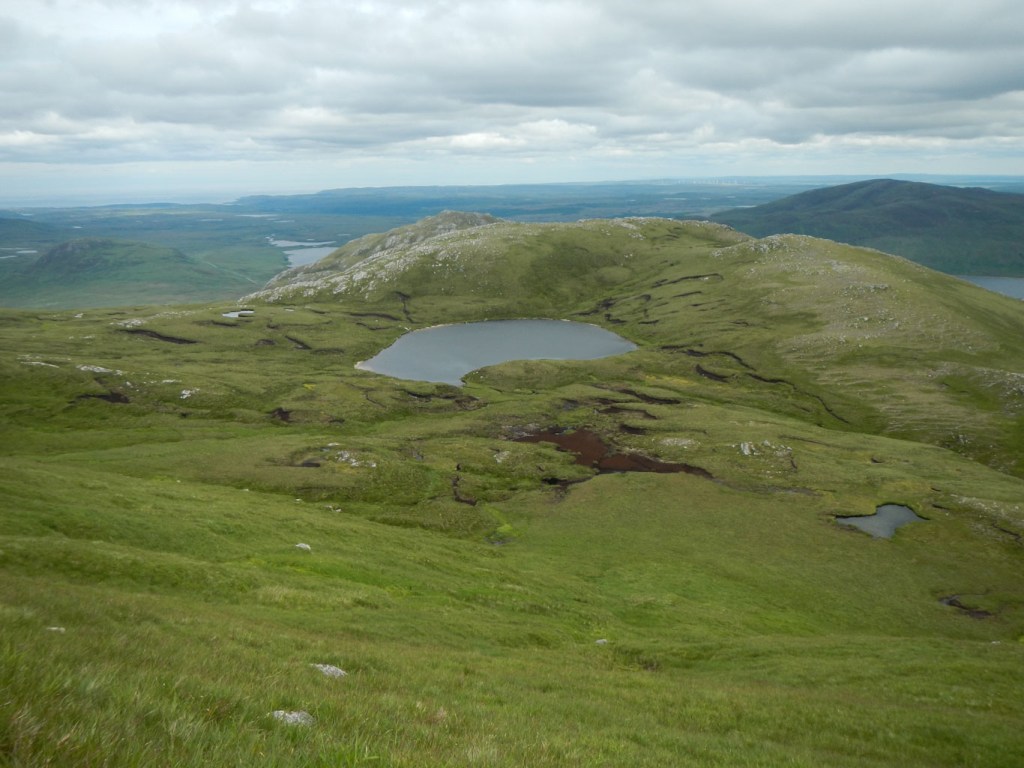 I made my descent over the grassy but steep slopes to the east of the main summit, passing near Loch na Creige Riabhaich. I actually found the main path down which met up with the point where I had turned right on my ascent.