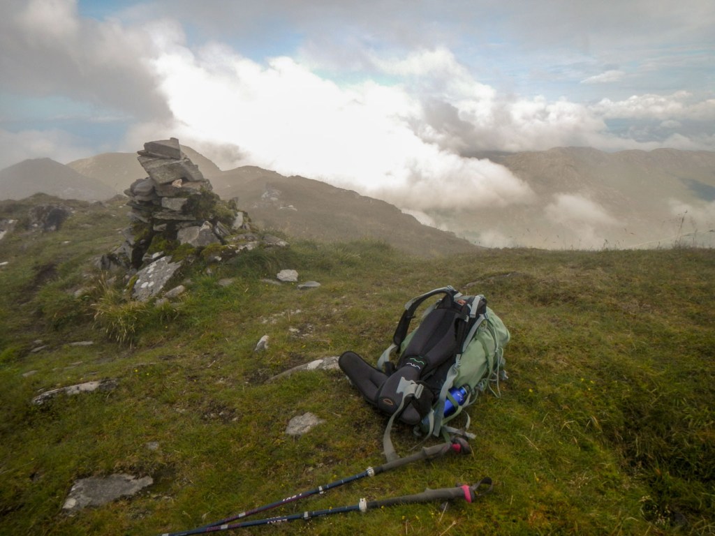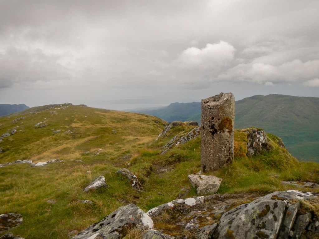 From Sgurr an t-Sagairt there was just a small dip and then an easy wide path to the dilapidated cylindrical trig point pillar at the summit of Beinn Bhuidhe – 855m and awesome views. There was also full phone and data reception and so began my routine of sending a daily text home from my high point.