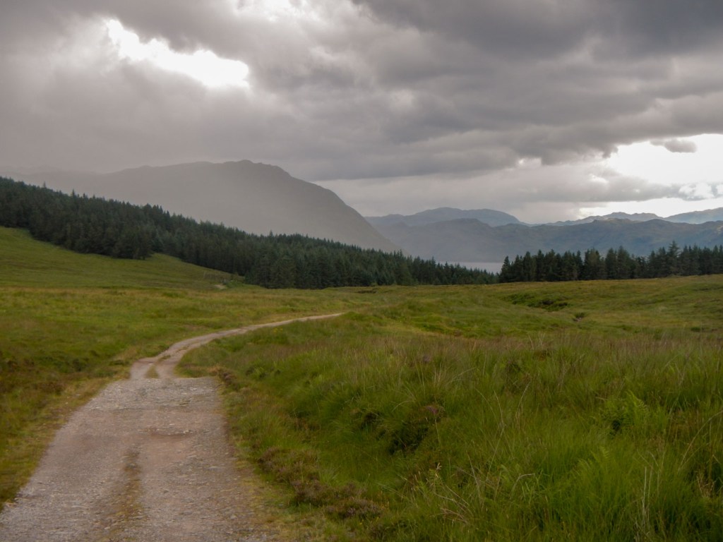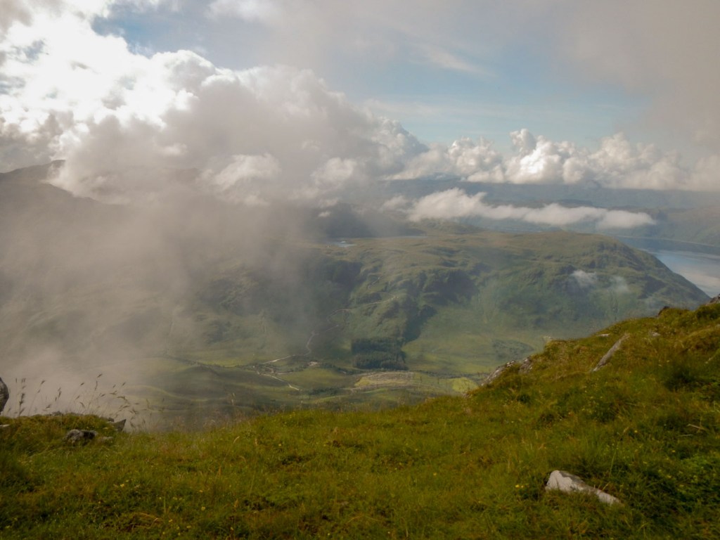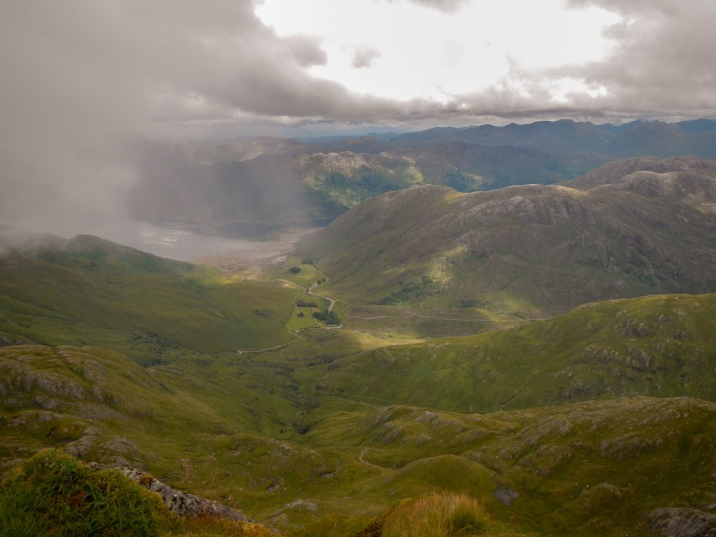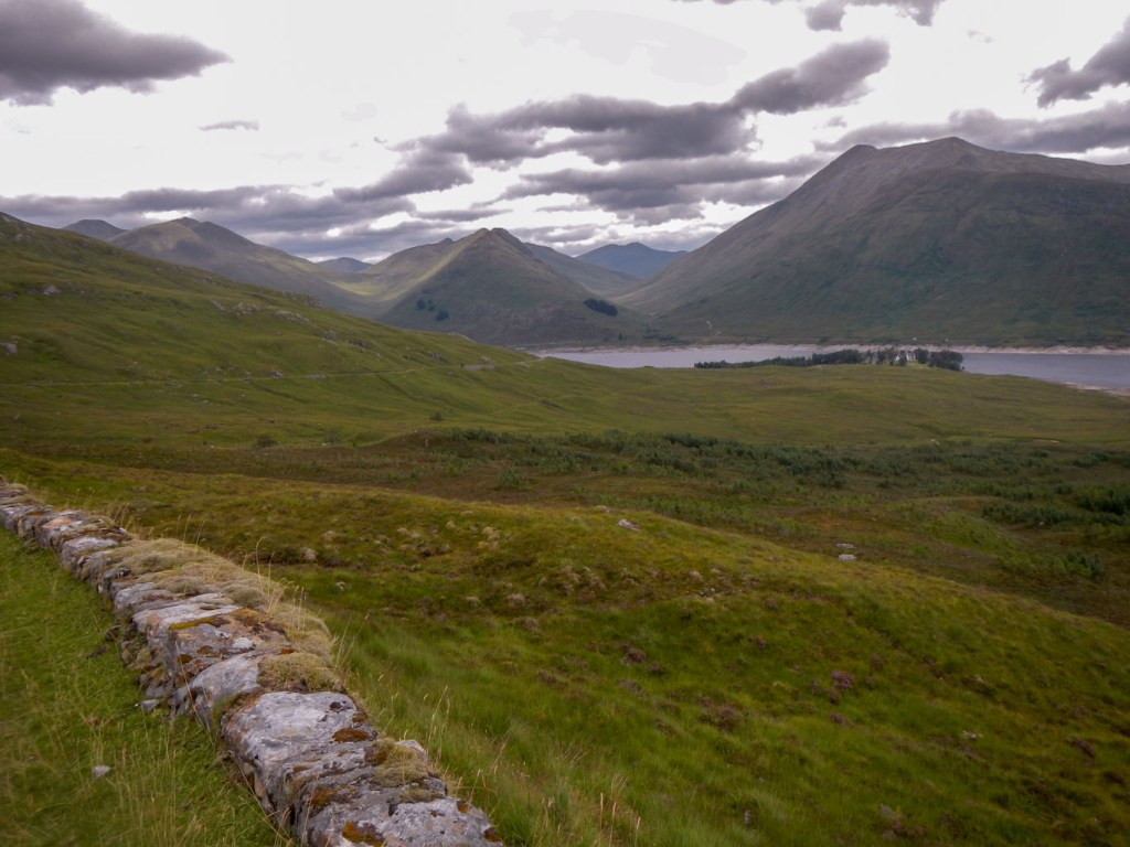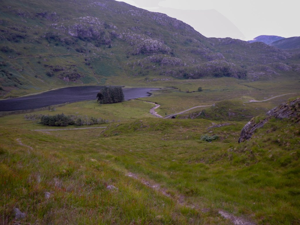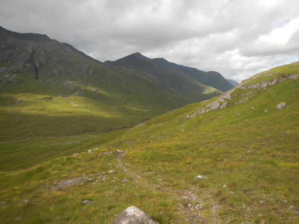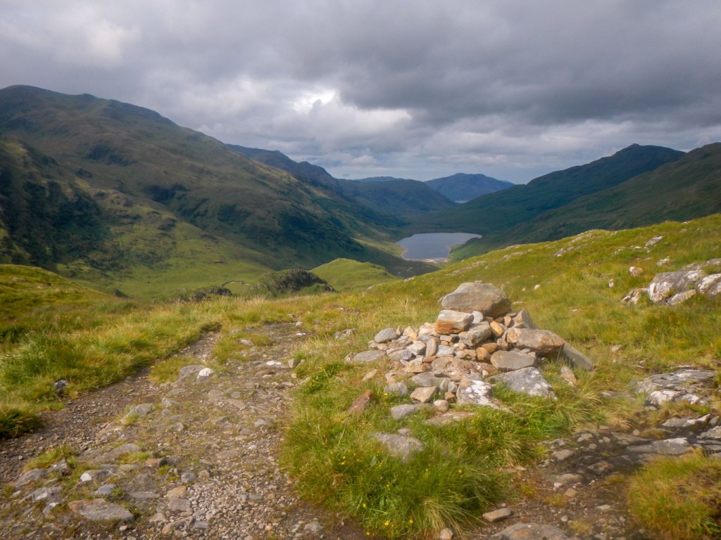 The ongoing path was straightforward to follow over a broad bealach with an amazing view towards Loch Loyne.