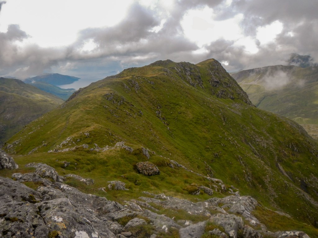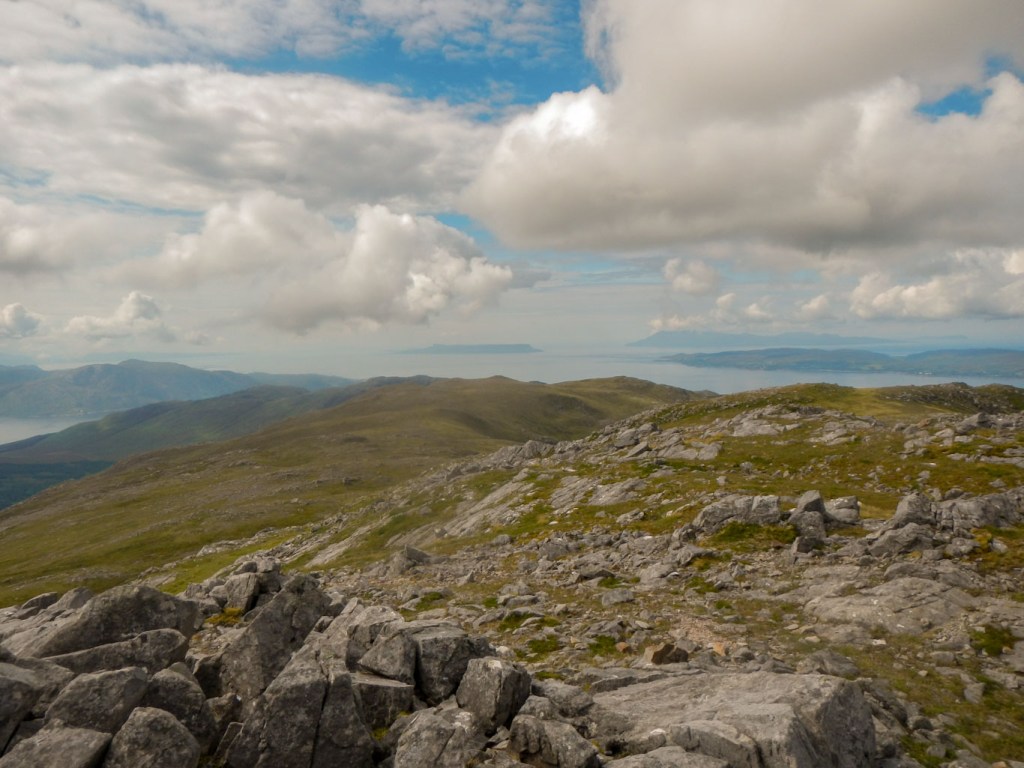I was really impressed with the onward walk from the summit. It was a broad grassy ridge and an excellent airy walk with an amazing view ahead to Skye and the Small Isles.