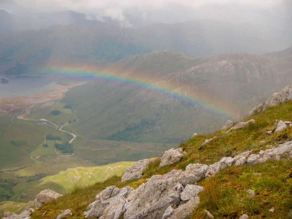 As I went back along the ridge, I saw an amazing rainbow over Barisdale – of course seen with mixed emotions as that means it’s raining somewhere close by.
