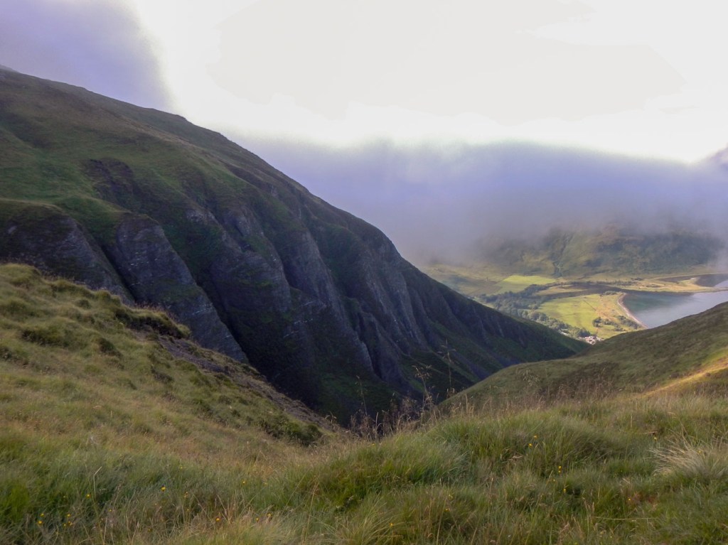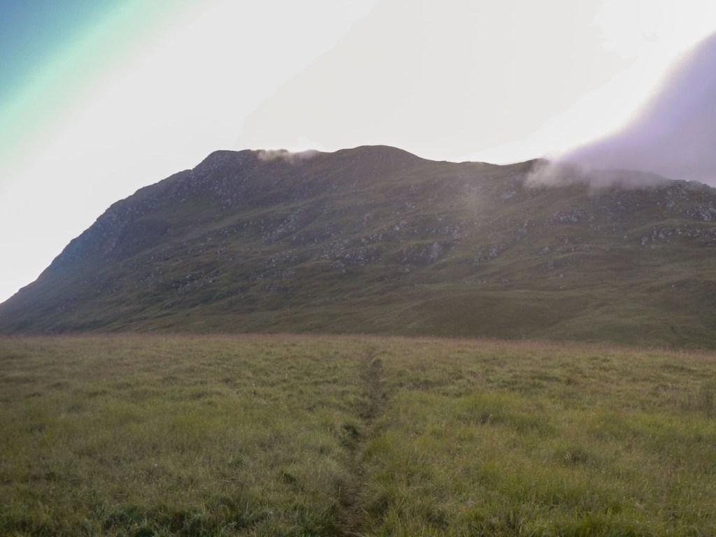 It was a superb spot apart from the inevitable midges. Next morning dawned dry but windy and the cloud had lifted a little so I packed up and started my ascent.