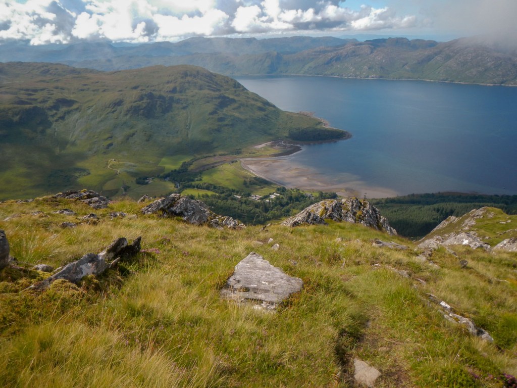 Eventually I followed to make my own descent. This was the only one of my summit walks where I had seen other people on the mountain. As I descended, I met three groups making the ascent – my new next door neighbours from the campsite who were there exploring in order to develop a business offering trail running holidays, a family staying at a cottage in Inverie – the children had pleaded with their parents to walk up a mountain, a resident of Inverie whose father was visiting and they were climbing with their dog.
