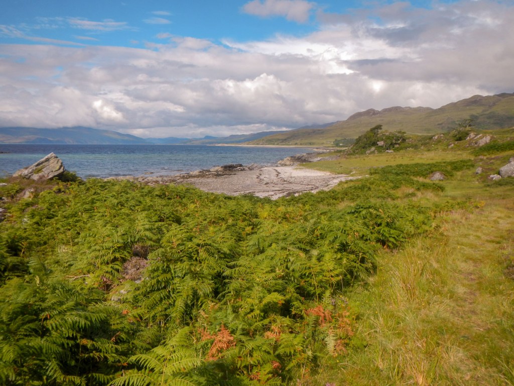 I was back in the village in time for lunch, but I had already eaten my sandwiches while on the mountain. I was tempted to coffee and cake at the café while I looked at the possibilities for walks in my remaining half day. My constraint was that I wanted to be back at the village in time to buy some chocolate and a final bottle of Knoydart Brewery beer as I didn’t want to carry this shopping on my walk. The shop closes at 7pm so as it was 2pm I had five hours.