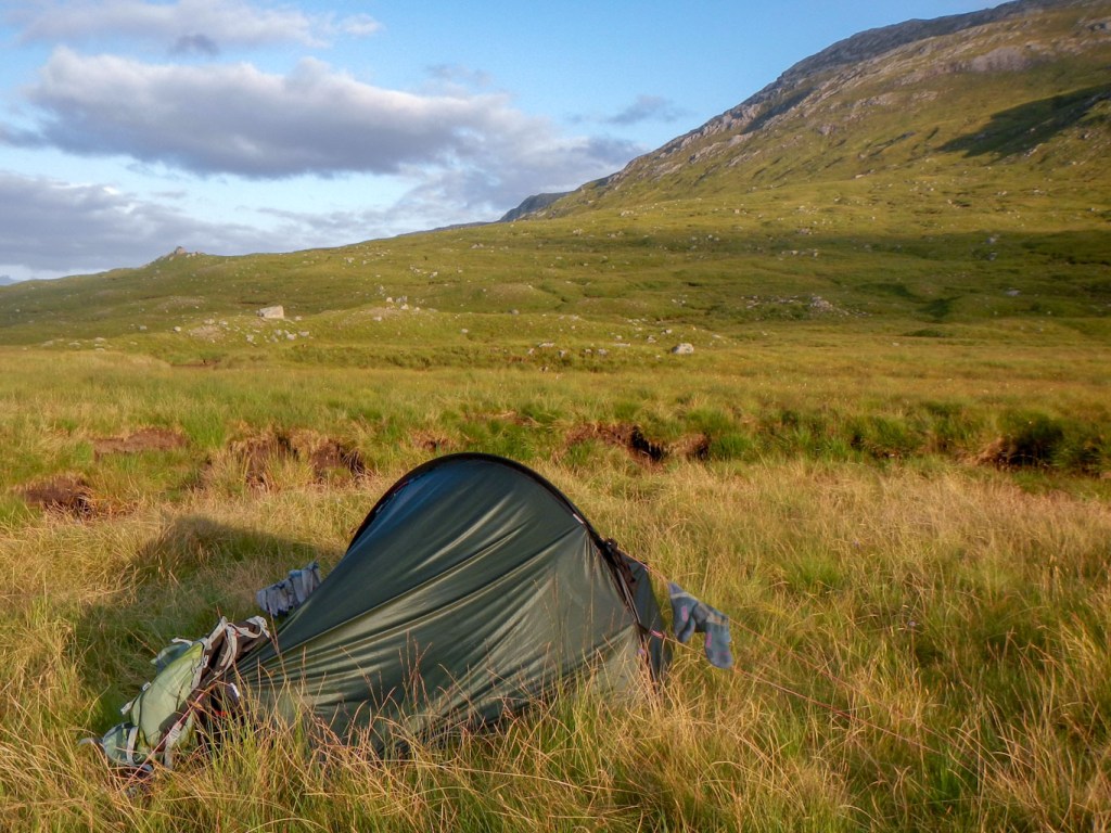I was so pleased that I hadn’t accepted the lift now! After I had eaten dinner the sun came out – it was a beautiful evening apart from the inevitable midges. Occasionally the wind blew a little and I managed to dry out the base of my rucksack that had got wet in the earlier torrential rain.