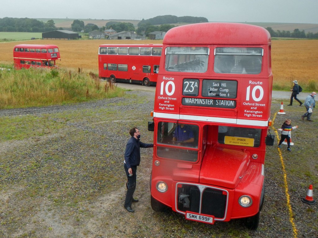 My plan was to complete an approximately thirty mile circular walk mainly following the perimeter of the Imber Firing Range Danger Area. However I discovered that on 21 August a special event was taking place – “Imberbus”. Apart from being a casualty of Covid in 2020, this has been an annual highlight since 2009. It would actually allow me to visit the site of the lost village of Imber (not usually accessible to civilians), where St Giles’s church is the main attraction. I would travel there on a London bus and also the bus would convey me on several roads that are within the military range and normally closed to the public. I opted to choose my dates so I could attend the Imberbus Event and then walk round the perimeter path over the following couple of days.