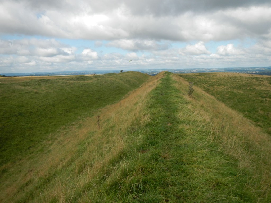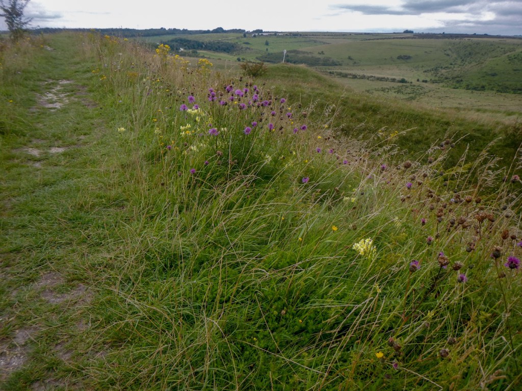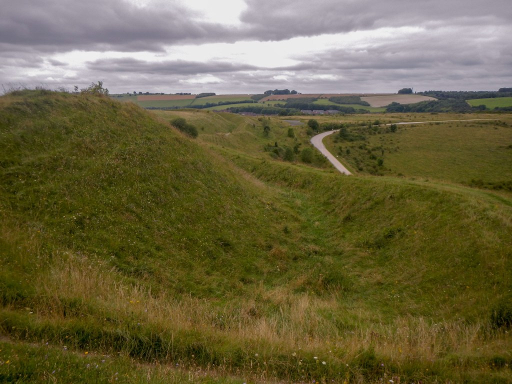 - Scratchbury and Battlesbury hillforts – these are walked in quick succession separated just by Middle Hill which is topped by a barrow. They both have impressive ramparts, which I was able to walk around. Both are Iron Age but with evidence of earlier occupation. Scratchbury has a single rampart and Battlesbury has two ramparts.