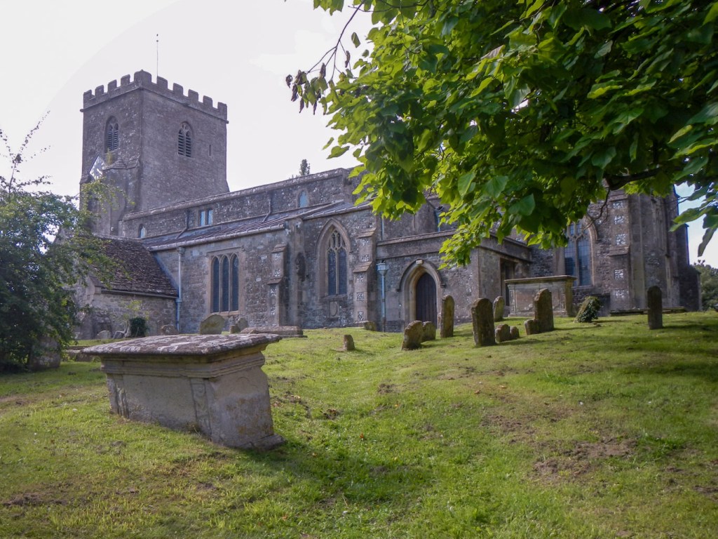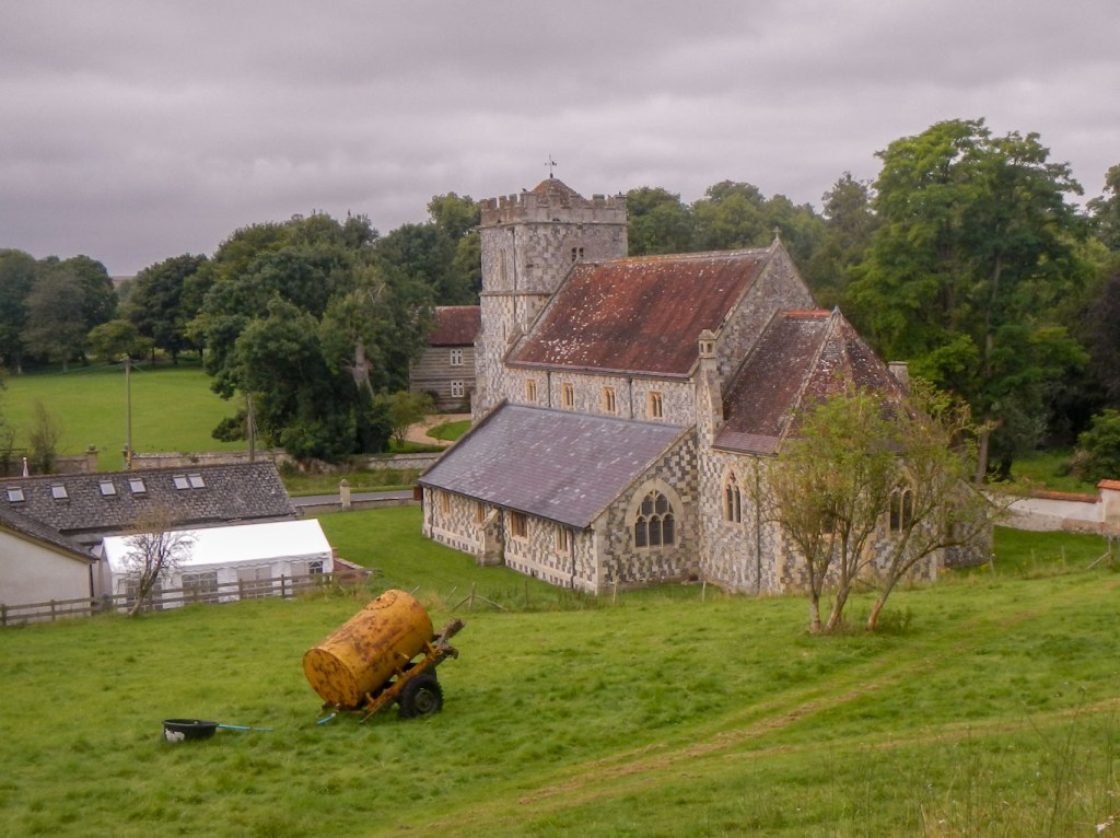- Chitterne – the path seemed to go round the back of the village but there were views of the church with it’s interesting flint and stone chequer pattern. There had been two separate churches in the village but in the nineteenth century when these were in poor repair a new church was built. It was designed to have enough seats for the entire village community. The old churchyards were retained as the area around the new church wasn’t suitable due to risk of flooding. That would explain why I saw a graveyard well away from the church as I walked up a hill to leave the village.